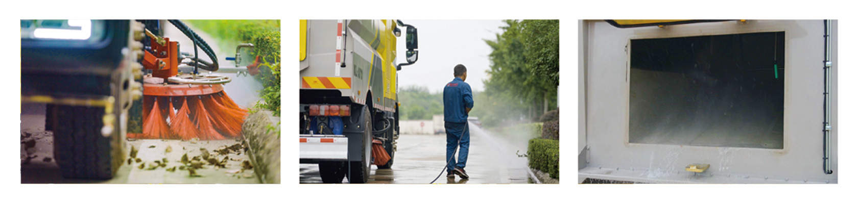 具有路面洒水、冲洗、扫路、清洗、降尘等多种功能。同时配有高压水枪可对道路卫生死角、牛皮癣及车辆自身进行清洁作业采用“中置两扫盘+中置宽吸嘴+内置高压主喷杆+左右高压侧喷杆”布置,小流量高压水泵,左右喷杆V形布置和吸嘴内置主喷杆无间隙高压喷嘴喷水,洗净率高、作业速度快。