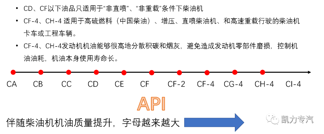 API(美国石油协会简称)在2006年针对柴油发动机技术发展推出CJ-4机油标准,在2016年推出CK-4机油标准。CJ-4标准替代CI-4、CH-4、CF-4,主要面向废气冷却循环(EGR)和颗粒扑捉器(DPF)重负荷柴油机制定。