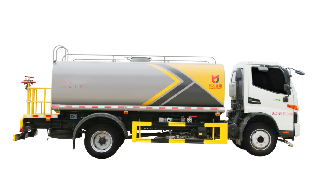 一般是由发动机带动变速箱,变速箱上安装的取力器经由传动轴带动洒水泵,洒水泵产生动力,将罐体内部的液体通过管网喷洒出去。