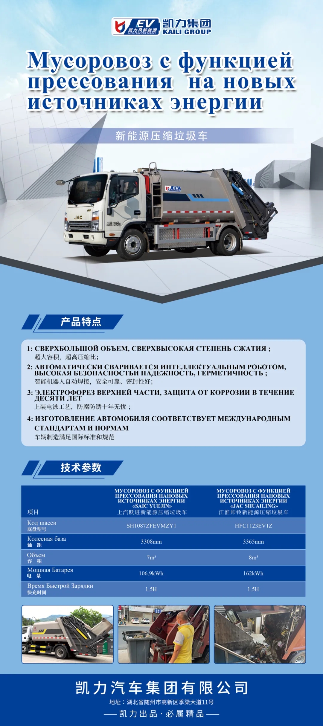 凯力集团本次参展的新能源压缩式垃圾车,是凯力集团在汽车新能化大趋势背景下研发推出的纯电动垃圾收运类车型,具有静音环保、零排放、经济高效等显著优势。参展的泡沫消防车是凯力集团为拓展产品品系,进军高端应急领域重磅推出的新一代消防车,具有机动性强、智能化程度高、火情扑救以及综合救援能力强悍等领先优势。