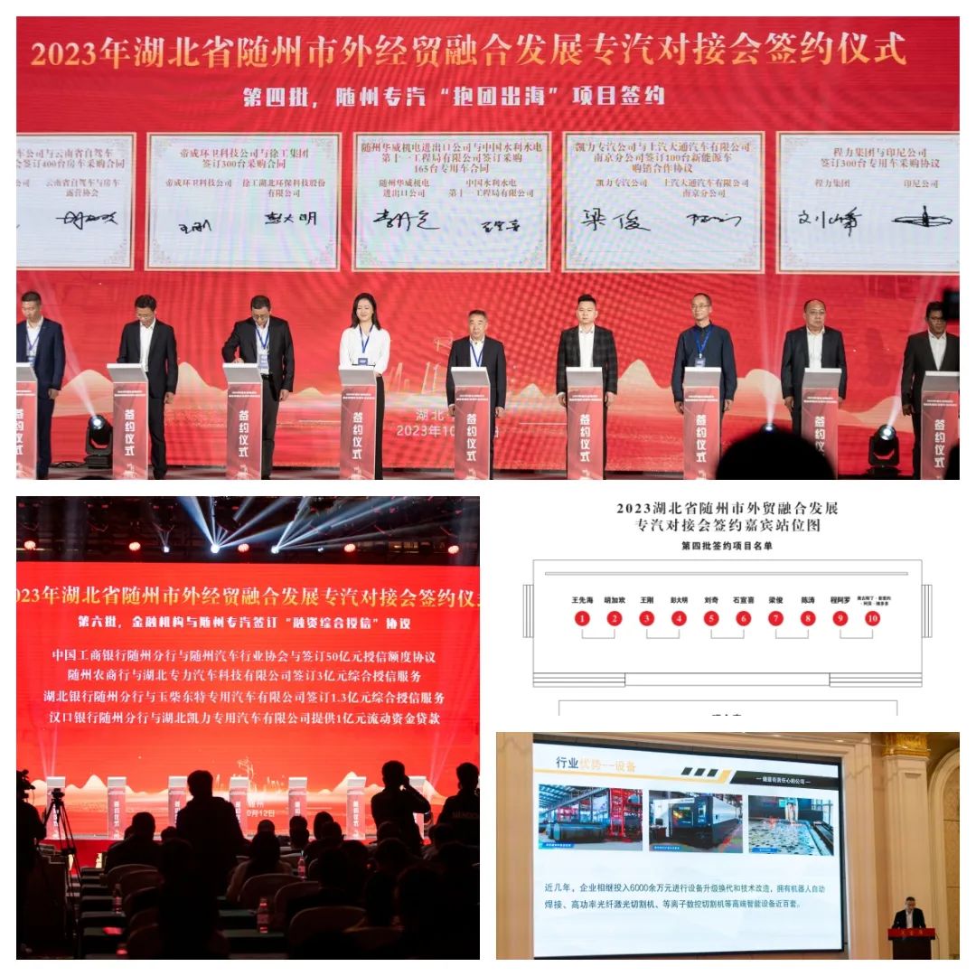 10月11日至13日,2023年湖北省随州市外经贸融合发展专汽对接会暨“一带一路”提倡十周年高峰论坛在湖北省随州市举行,充分利用“汉孝随襄十”万亿级汽车产业走廊优势,搭建交流平台,开展项目签约,举办汽车展览,推介专汽产业,借势借力推动专汽产业高质量发展,深度融入“双循环”新发展格局。