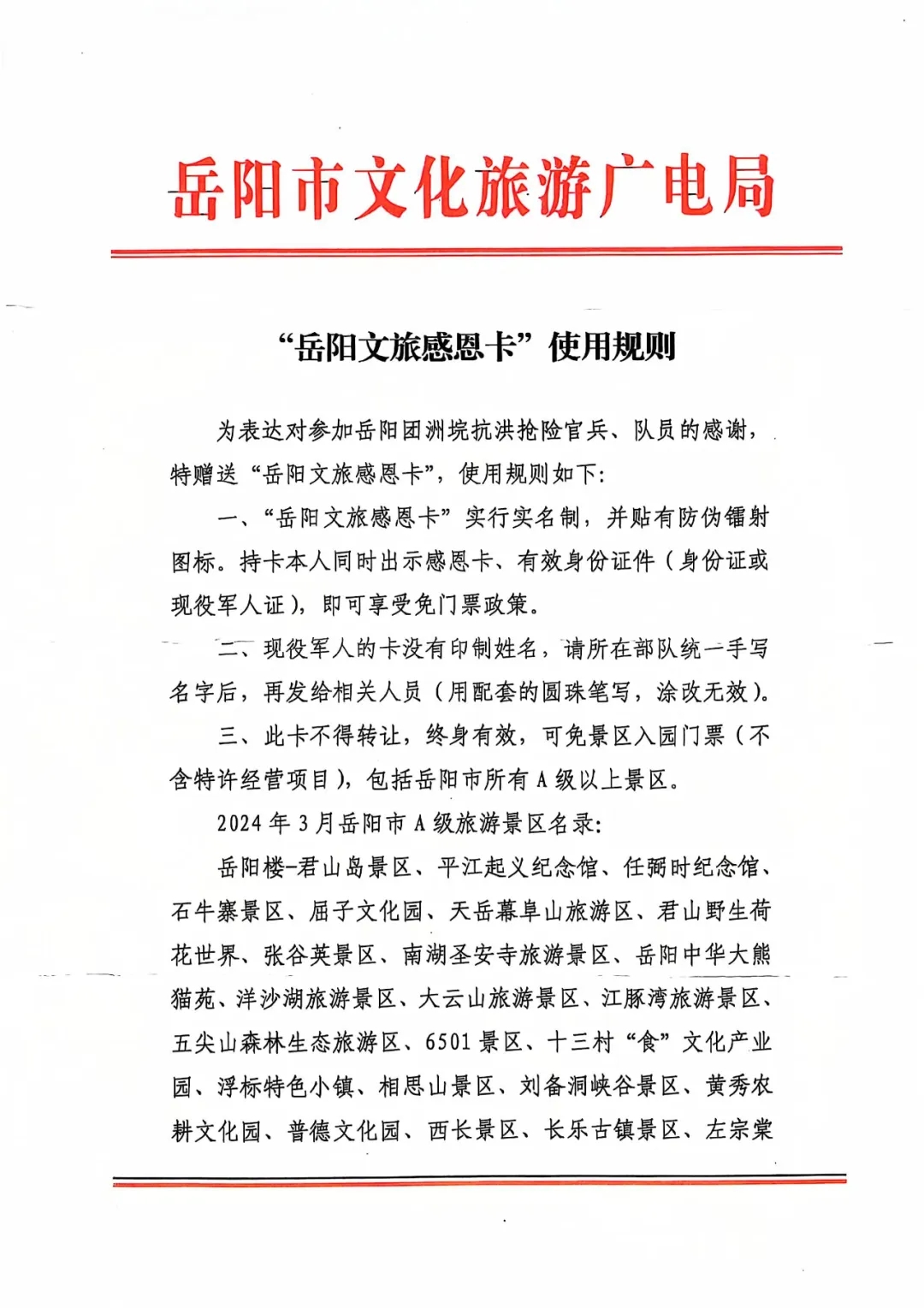 而岳阳文旅感恩卡的礼赠,不仅仅是一张免费游玩的凭证,更是对这些英雄们的崇高敬意和深深感恩。