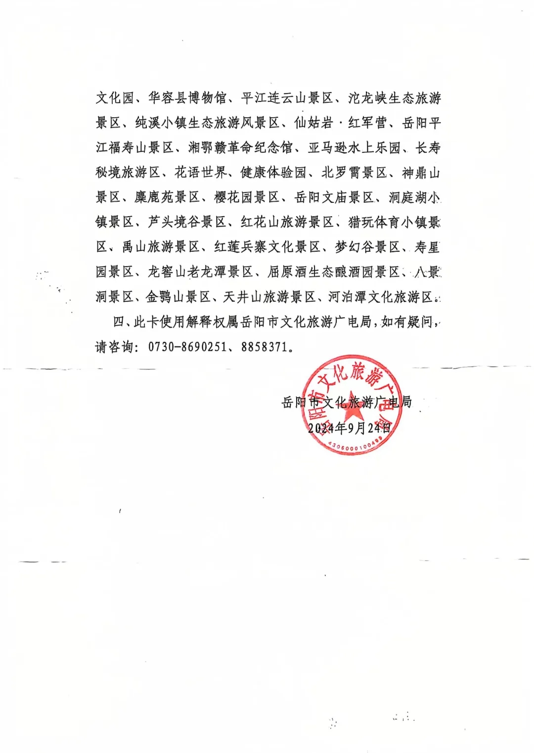 终身免费游岳阳,