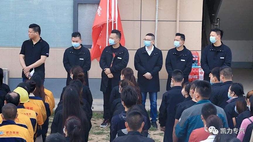 7时30分,全体员工在办公大楼前集结,举行 “你增产能,我提销量,冲刺半年目标3000台” 营销服务竞赛活动誓师动员大会,总经理梁俊宣布活动正式启动。
