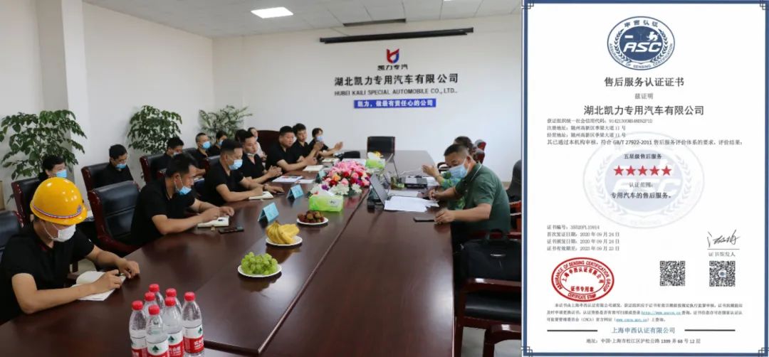 凯力专汽通过不断提升企业形象,塑造品牌,努力创新,追求卓越,紧跟社会发展脚步,呼应时代要求,持续改进服务,完善服务体系,强化服务管理水平及服务能力,顺利通过五星售后服务认证并获得证书,证明了凯力专汽在全行业的服务领先性,并获得了国家主管部门和社会各界的充分肯定,以及消费者和市场的认可。