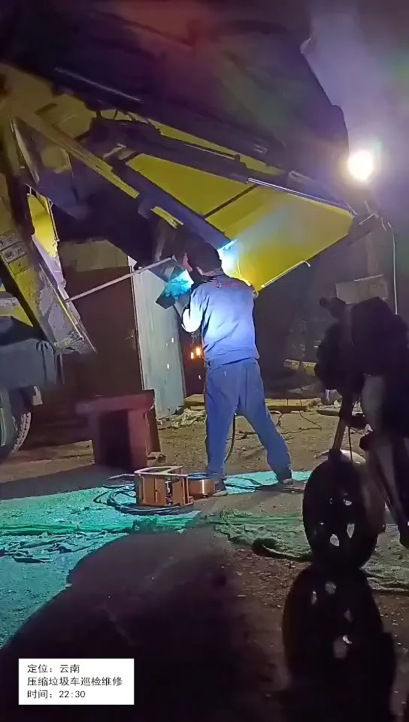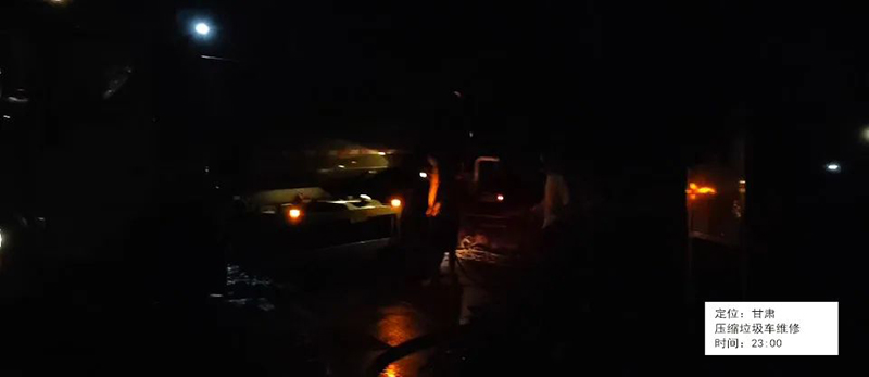 甘肃,售后人员临时接到报修电话,为不影响客户第二天的工作,连夜对客户压缩垃圾车进行维修,完工时凌晨一点。